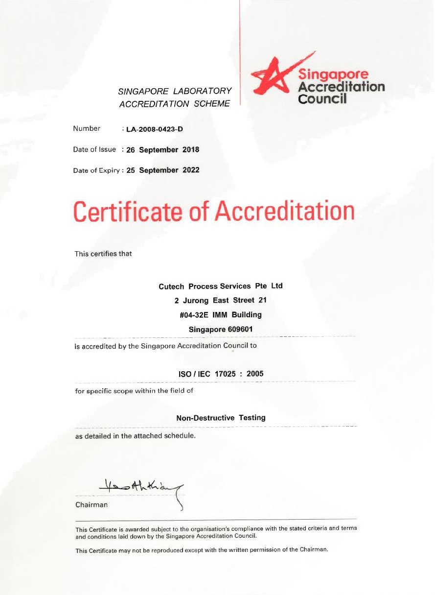 Our Inspection & NDT bodies are accredited by ISO 9001:2000, SAC-SINGLAS, DNV, ABS proving our competitiveness and adherence to internationally recognised standards of excellence.